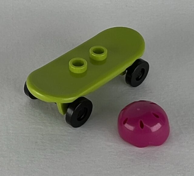 I think we’ve finally found our second letdown of the City calendar. I mean, this is more or less what we got with the scooter a few days ago, but skateboards have been so… common in things the last decade or so. This is the same as the Bart Simpson skateboard, sans the stripe, and they could have done something to jazz it up a bit. A different color, some printing, or something. So going to say this is a miss and wait for it to pick right back up.